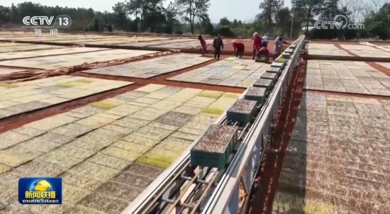 当前,南方早稻育秧进入高峰期。在江西余江的育秧中心,机械化育秧流水线加紧作业,一条生产线一个小时就能育秧2400盘。工厂化育秧降低了秧苗的病虫害,保障了秧苗的存活率,为实现水稻高产提供了有效保障。目前,江西早稻集中育秧已经超过1000万亩。