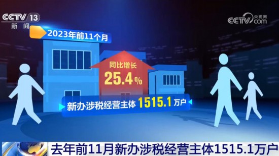 国家税务总局最新数据,2023年前11个月,到税务部门新办理税种认定、发票领用、申报纳税等涉税事项的经营主体1515.1万户,同比增长25.4%,其中,当年即领用发票、有收入申报的税收活跃户1055.7万户,占全部新办户69.7%,同比提高3.1个百分点,我国经营主体活力持续向好。